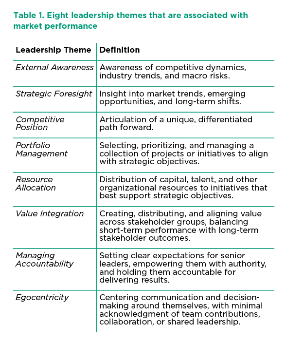 There’s a lot of science underpinning its research (and some of those weird spider web charts that I can never understand), but, essentially, Korn Ferry has identified eight leadership themes that are associated with market performance.